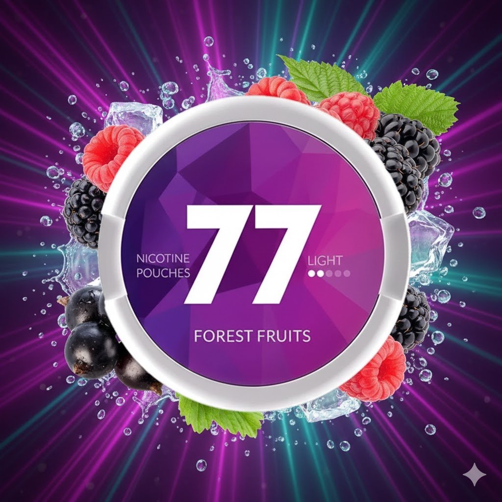 77 Pouches Forest Fruit LIGHT (Q) kombinují šťavnaté lesní plody s jemným nikotinovým efektem, ideální pro uživatele preferující nižší sílu nikotinu.