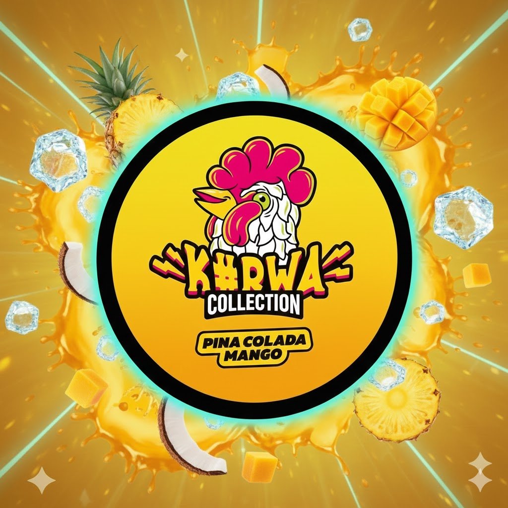 KURWA COLLECTION Piña Colada Mango jsou nikotinové sáčky s exotickou chutí ananasu, kokosu a sladkého manga. Bez tabáku, bez kouře a zápachu. Krémově ovocná příchuť inspirovaná tropickým koktejlem.