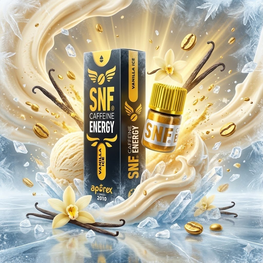 SNF Caffeine Energy Vanilla Ice 1g je prémiový energetický produkt kombinující kofein s jemnou vanilkovou příchutí pro okamžité povzbuzení a příjemný zážitek. Kofein pomáhá zvýšit bdělost, koncentraci a energii, zatímco vanilka dodává příjemnou sladkou chuť pro ještě komfortnější užívání.